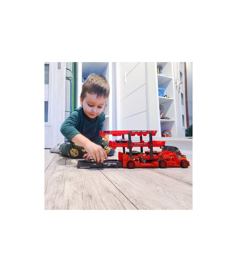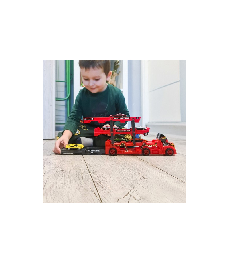 Zabawkowy tir z samochodzikami to zabawka, która przypadnie do gustu każdemu małemu miłośnikowi motoryzacji. Dzięki niej maluch może przenieść się do świata pełnego samochodzików oraz ciężarówek i spędzić tam długie godziny radosnej zabawy. To pojazd, którego z pewnością nie może zabraknąć w żadnej samochodowej kolekcji. Dzięki niej pociecha może swobodnie przewozić pojazdy z pokoju do pokoju i poczuć się jak prawdziwy kierowca tira.