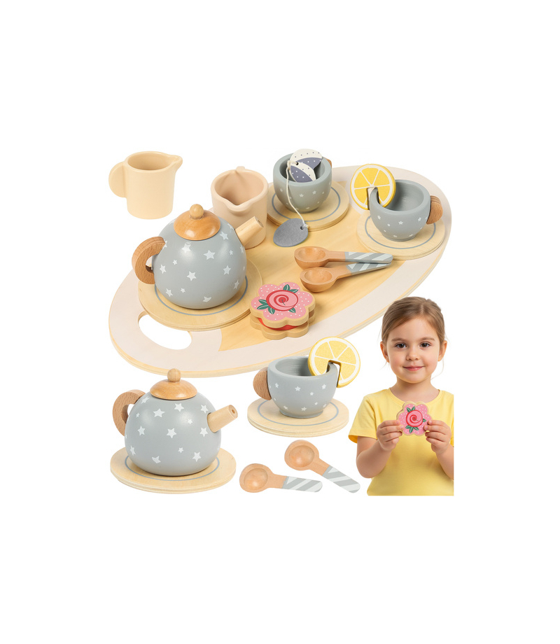 Drewniany zestaw do herbaty to coś więcej niż zabawka - to sposób na wspólne chwile, naukę dobrych manier i rozwój wyobraźni w ciepłej, domowej atmosferze. Naturalne drewno, pastelowe kolory i realistyczne detale sprawiają, że każde „herbaciane przyjęcie” staje się małym świętem wyobraźni i radości.