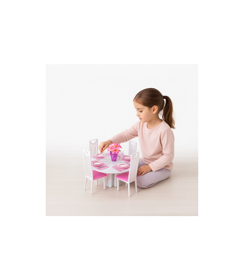 Zabawa jak w prawdziwym domku – piękne mebelki dla lalek, które rozwijają wyobraźnię i nie psują się po kilku użyciach! Trwały zestaw 43-elementowy z jadalnią, stołem, krzesłami i zastawą to gwarancja długiej, kreatywnej zabawy bez obaw o zniszczenia — idealny prezent, który cieszy i uczy jednocześnie.