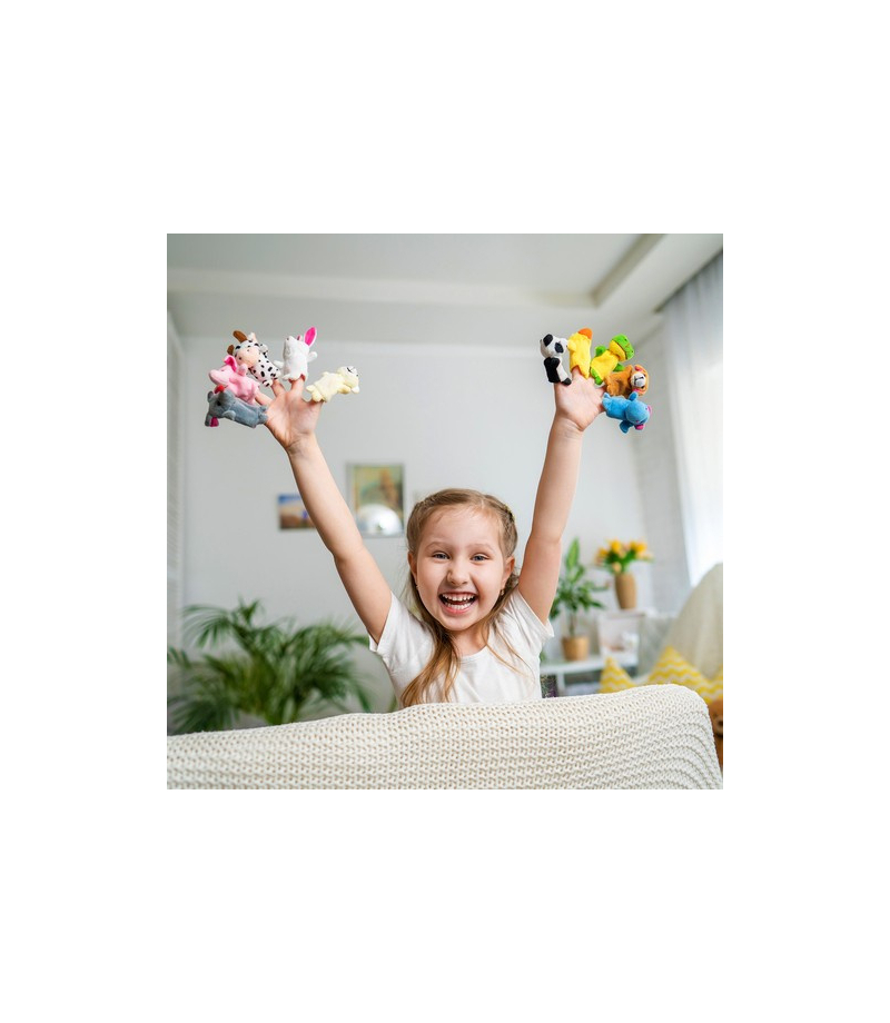 KOLEKCJA ZWIERZĄTEK – zestaw zawiera 10 kukiełek - zwierzaków, które pasują na każdy palec dłoni możesz użyć do zabawy na palcach, co zwiększa atrakcyjność i sprawia, że teatrzyk jest ciekawszy oraz daje możliwość rozwoju opowieści. Pacynkami można bawić się również w większym gronie. Kukiełki są odpowiednie na ręce małych dzieci, ale także mniejsze palce dorosłych.