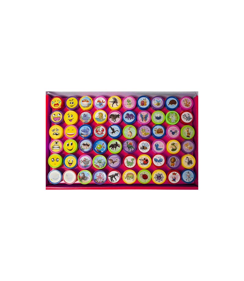 ZESTAW STEMPELKÓW DO PIECZĄTKOWANIA DLA DZIECI - 60 SZTUK / 6 KOLORÓW ZWIERZKI I BUŹKI 60 SZTUK W ZESTAWIE - w opakowaniu znajduje się aż 60 stempelków o różnych wzorach co gwarantuje Twojemu dziecku wielogodzinną interesującą zabawę. Stempelki posiadają wzory takie jak zwierzątka czy emotikony . WIELOFUNKCYJNE – pieczątki mogą posłużyć do ozdabiania zeszytów, zaproszeń lub laurek. Sprawdzą się również jako kontury, które dziecko może pokolorować według własnych upodobań....