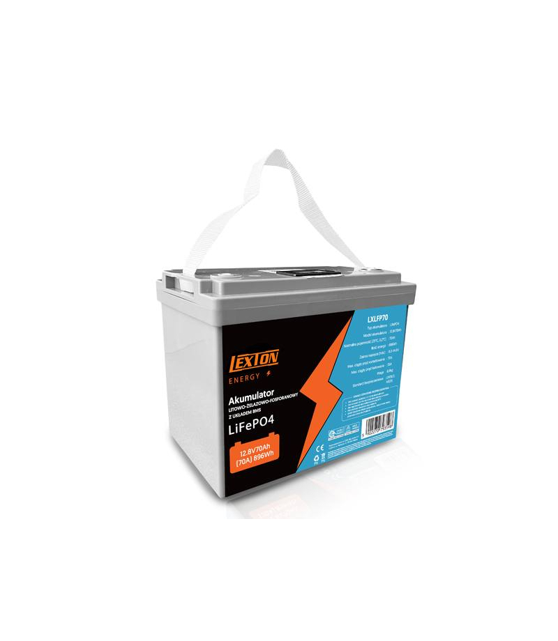 AKUMULATOR LITOWO-ŻELAZOWO-FOSFORANOWY BMS LiFePO4 LCD/Bluetooth 12.8V 70Ah LXLFP70 AKUMULATOR LITOWO-ŻELAZOWO-FOSFORANOWY Z UKŁADEM BMS LiFePO4 12.8V 70Ah Akumulatory typu LiFePO4 (litowo-żelazowo-fosforanowe) z wbudowanym układem BMS Akumulatory typu LiFePO4 (litowo-żelazowo-fosforanowe) z wbudowanym układem BMS charakteryzują się przede wszystkim bardzo niską wagą oraz dużą ilością cykli pracy - żywotność ok. 6000 cykli przy DoD 60%....
