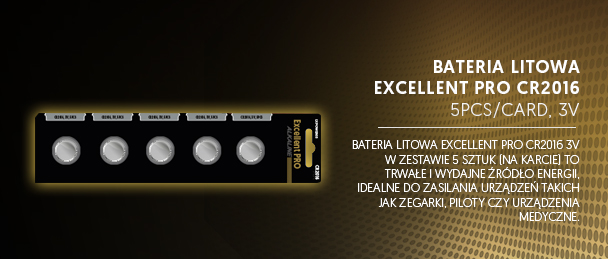 BATERIA LITOWA EXCELLENT PRO CR2016 5szt. 3V LAMEX LXPOWER03 Baterie litowe Excellent Pro CR2016 5 szt. 3V – Niezawodna energia w super cenie! Potrzebujesz pewnego źródła zasilania dla swoich urządzeń? Excellent Pro CR2016 to litowe baterie guzikowe, które sprostają każdemu wyzwaniu! Z napięciem 3V i pojemnością 90 mAh idealnie nadają się do zegarków, pilotów, kalkulatorów, kluczy samochodowych, zabawek czy urządzeń medycznych. Te małe giganty energii...