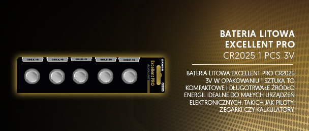 BATERIA LITOWA EXCELLENT PRO CR2025 5szt. 3V LAMEX LXPOWER05 Bateria litowa EXCELLENT PRO CR2025 3V Niezawodna bateria litowa CR2025 od EXCELLENT PROZasil swoje urządzenia wysokiej jakości źródłem energii! Bateria litowa EXCELLENT PRO CR2025 3V to doskonały wybór do różnorodnych urządzeń elektronicznych, takich jak piloty, kluczyki samochodowe, zegarki, kalkulatory, urządzenia medyczne czy zabawki. Zapewnia długotrwałą wydajność, stabilność działania i bezpieczeństwo użytkowania,...