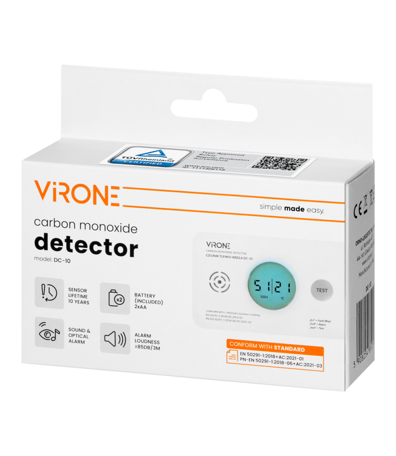 Bateryjny czujnik tlenku węgla (czadu), 2xAA, żywotność sensora 10 lat Orno DC-10 Bateryjny czujnik tlenku węgla (czadu) to nowoczesne urządzenie alarmowe zaprojektowane do stałej kontroli stężenia tlenku węgla. Przystosowany do wewnątrz, w przestrzeniach szczególnie narażonych na zagrożenia mogące powstać w wyniku awarii lub braku odpowiedniej wentylacji. Urządzenie posiada wyświetlacz LCD, który sygnalizuje poziom wykrytego zagrożenia (czadu), a także niski stan baterii oraz koniec...