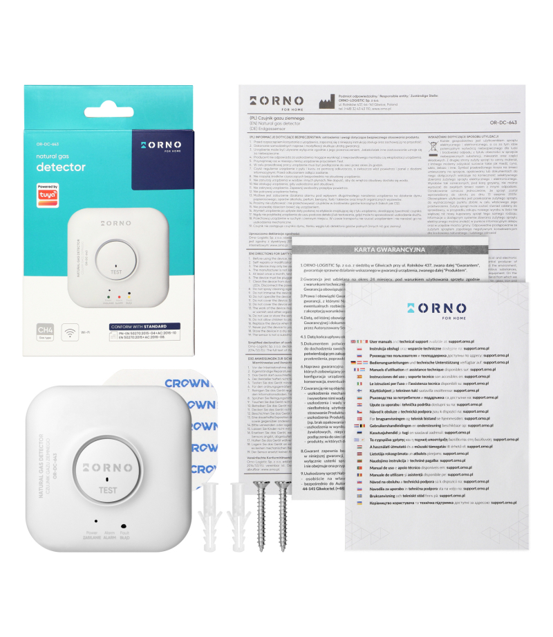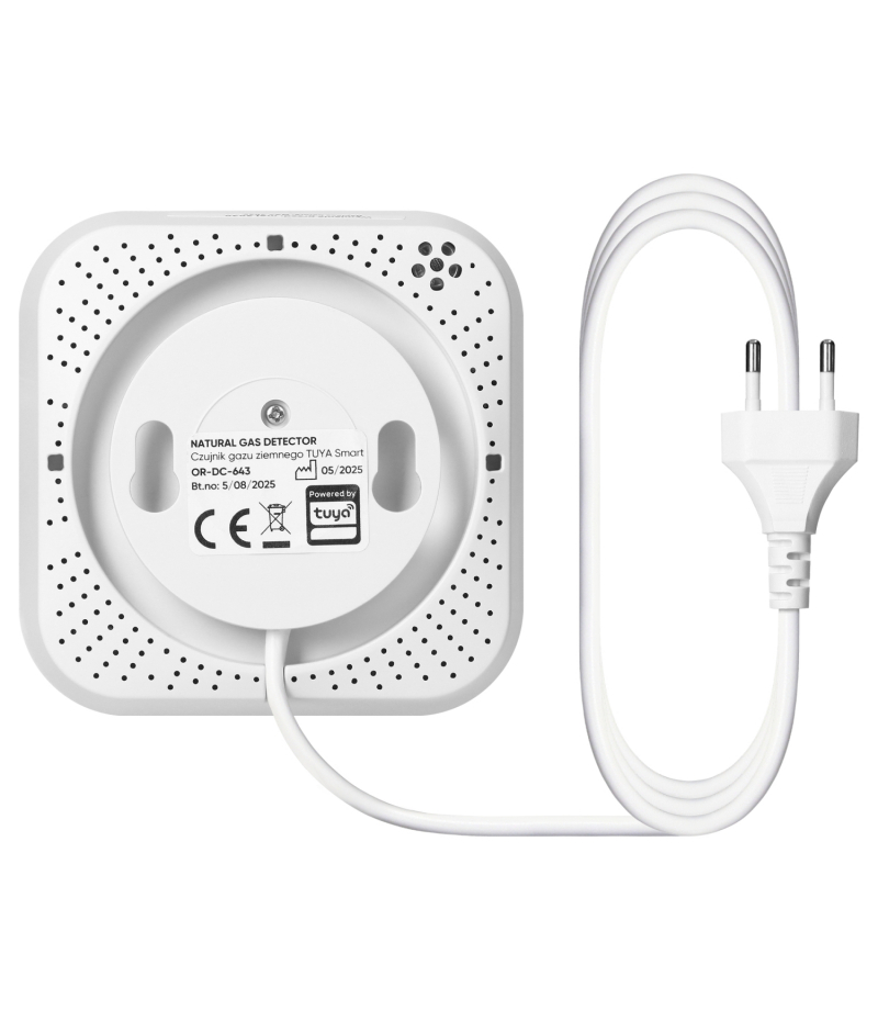 Czujnik gazu ziemnego, 230 V AC, żywotność sensora 5 lat, Tuya Smart Wi-Fi Orno OR-DC-643 Czujnik gazu ziemnego to nowoczesne urządzenie o wysokiej skuteczności wykrywania metanu. Wbudowany sygnalizator optyczno-akustyczny natychmiast informuje użytkownika o wykrytym gazie, zapewniając jednocześnie szybką reakcję na zbliżające się niebezpieczeństwo. Wbudowana technologia Wi-Fi pozwala połączyć urządzenie z aplikacją Tuya Smart, dzięki czemu możliwa jest integracja z innymi inteligentnymi...