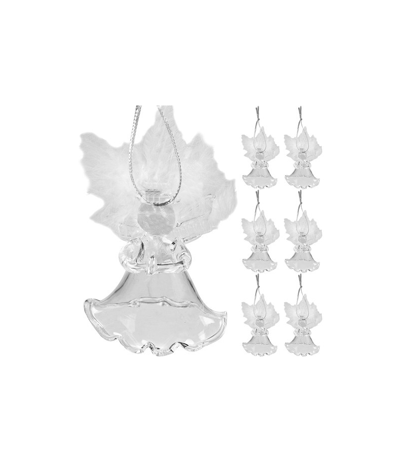 PRZEŹROCZYSTE ANIOŁKI SZKLANE NA CHOINKĘ W PIÓRKACH 6szt WYSOKA JAKOŚĆ - zestaw 6 zawieszek wykonany jest z wysokiej jakości, przezroczystego szkła, które nadaje mu eteryczny wygląd. Szkło jest starannie kształtowane i formowane, aby stworzyć postać aniołka z dbałością o szczegóły – płynne linie, wdzięczne krzywizny i efektowny wygląd . Aureola będąca jednocześnie zawieszką, do której przyczepiony jest srebrny sznureczek, jest symbolem boskości. Zachwycającym punktem figurki są...