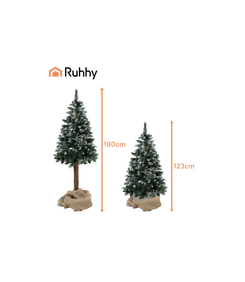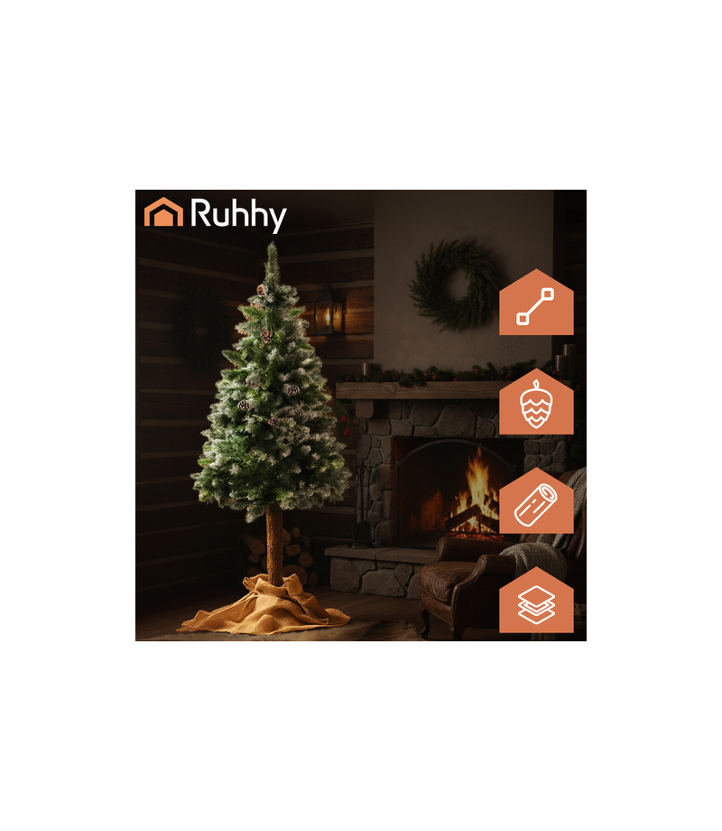 Choinka sztuczna jak żywa RUHHY Twój świąteczny klimat zaczyna się od pięknej choinki - wybierz model, który zachwyca! Naturalnie wyglądająca, ośnieżona choinka Ruhhy o wysokości 180 cm wprowadzi do Twojego domu prawdziwie zimowy klimat. Gęste gałązki, naturalny pień i dwa warianty ustawienia pozwolą stworzyć wyjątkową, świąteczną dekorację bez konieczności pielęgnacji. To drzewko prezentuje się jak świeżo przyniesione z lasu i pięknie eksponuje ozdoby....