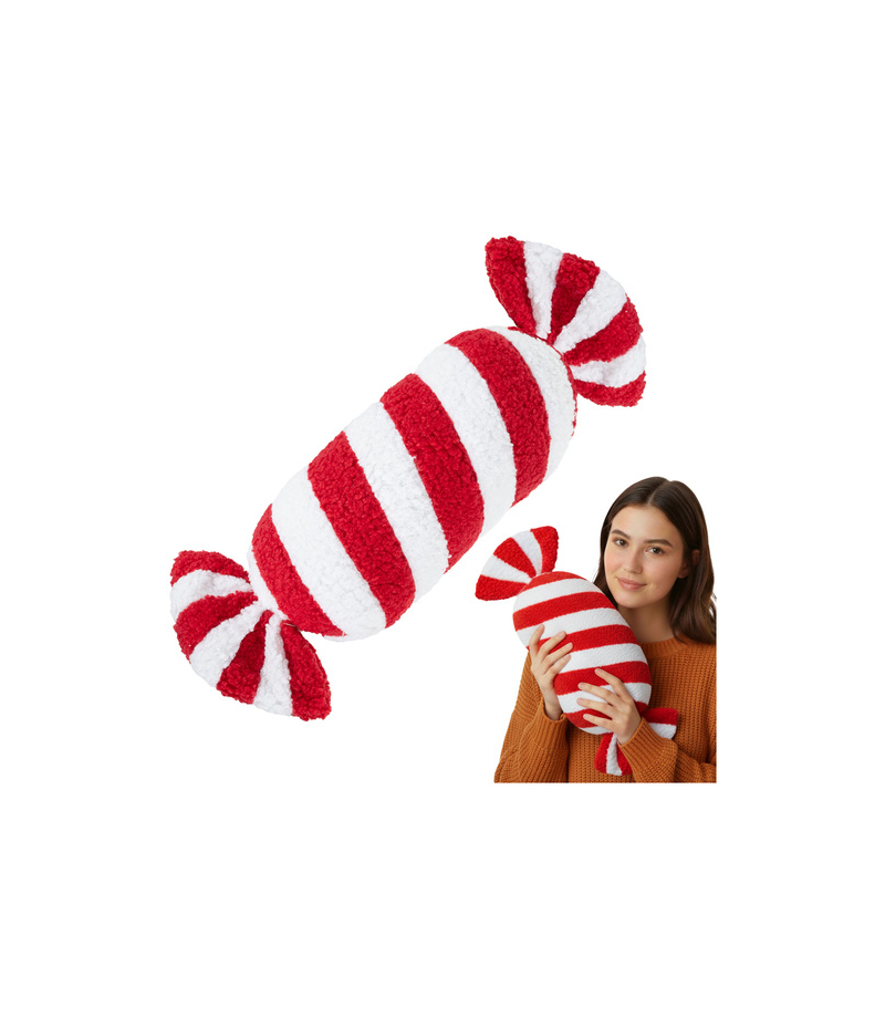 - Typ: dekoracja świąteczna / poduszka w kształcie cukierka (biało-czerwona)