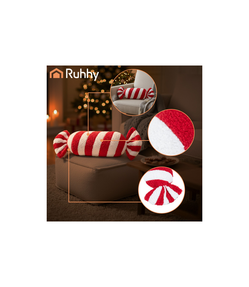 Dodaj słodki, świąteczny klimat do swojego domu dzięki miękkiej dekoracji w kształcie cukierka od Ruhhy. Biało-czerwony wzór świetnie komponuje się z choinką, stroikami i zimowymi dodatkami, a przyjemna w dotyku faktura ociepla każde wnętrze. To drobny akcent, który robi wielki efekt - idealny do salonu, sypialni i pokoju dziecięcego.
