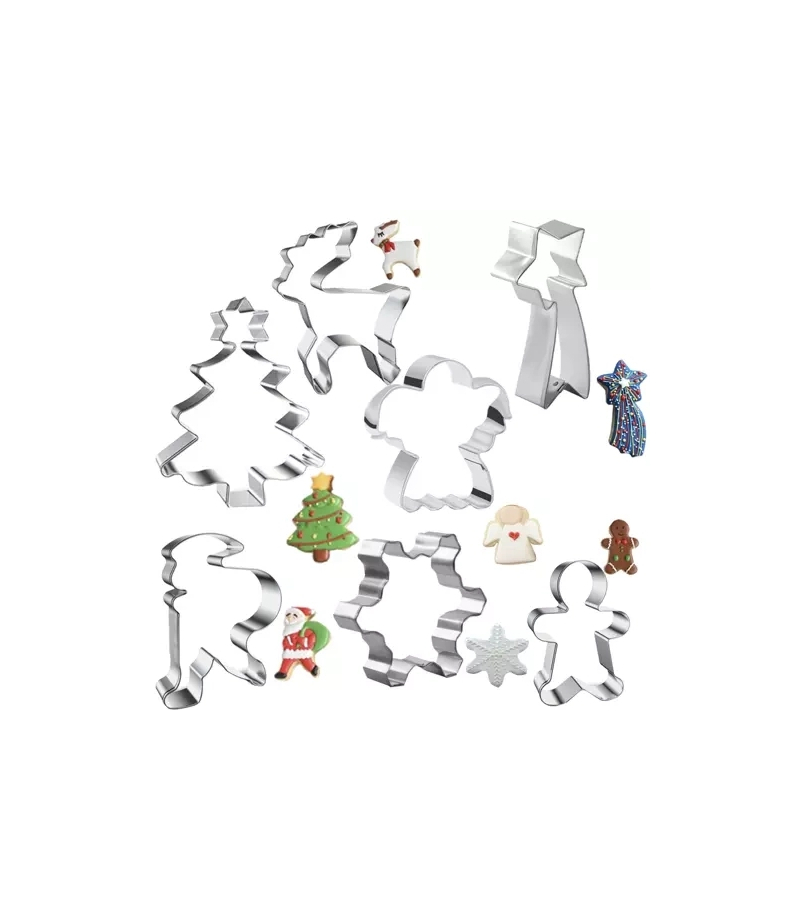 METALOWE FOREMKI ŚWIĄTECZNE 7 szt UNIWERSALNE ZASTOSOWANIE - idealna do wykrawania kruchych ciasteczek, pierniczków, biszkoptów oraz kształtów z masy cukrowej. Wykrawacze wykorzystasz również do wytwarzania pięknych dekoracji z modeliny, mydła, wosku i gliny ceramicznej. OSTRY BRZEG - foremka ma ostry brzeg, dzięki któremu poradzi sobie z wycinaniem nawet ze schłodzonego ciasta. Idealne rozwiązanie na szybką i dużą ilość wyciskanych ciasteczek. PROFILOWANY RANT - wykrawarka...