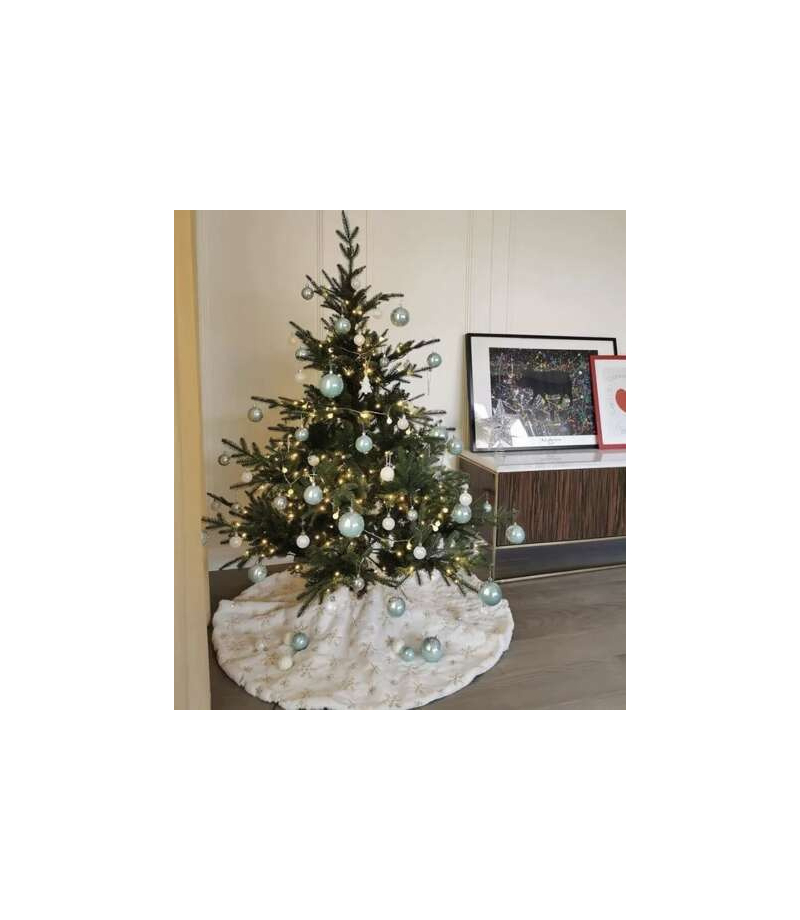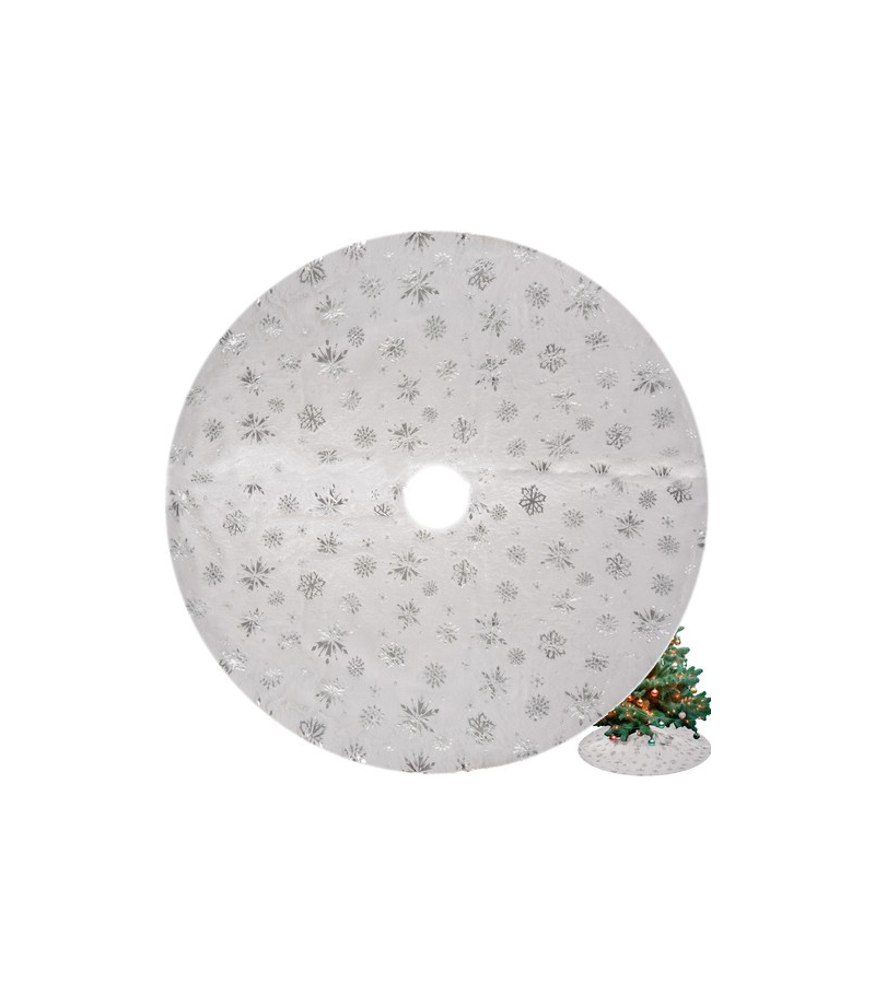 MATA / DYWANIK POD CHOINKĘ 120 cm OZDOBNE SREBRNE GWIAZDKI I ŚNIEŻYNKI – dywanik posiada nadrukowane ozdobne gwiazdki i śnieżynki. Dodaje to uroku dekoracji świątecznej i wprowadza w zimowy nastrój. DEKORACJA - dywanik pod choinkę stanowi dekoracyjny element samej choinki i pomieszczenia. Wybierając naszą matę, która pasuje do kolorystyki i stylu świątecznego i zimowego wystroju, dodasz uroku i harmonii Swojej dekoracji. MIĘKKI I PUSZYSTY MATERIAŁ - mata pod choinkę jest miękka...
