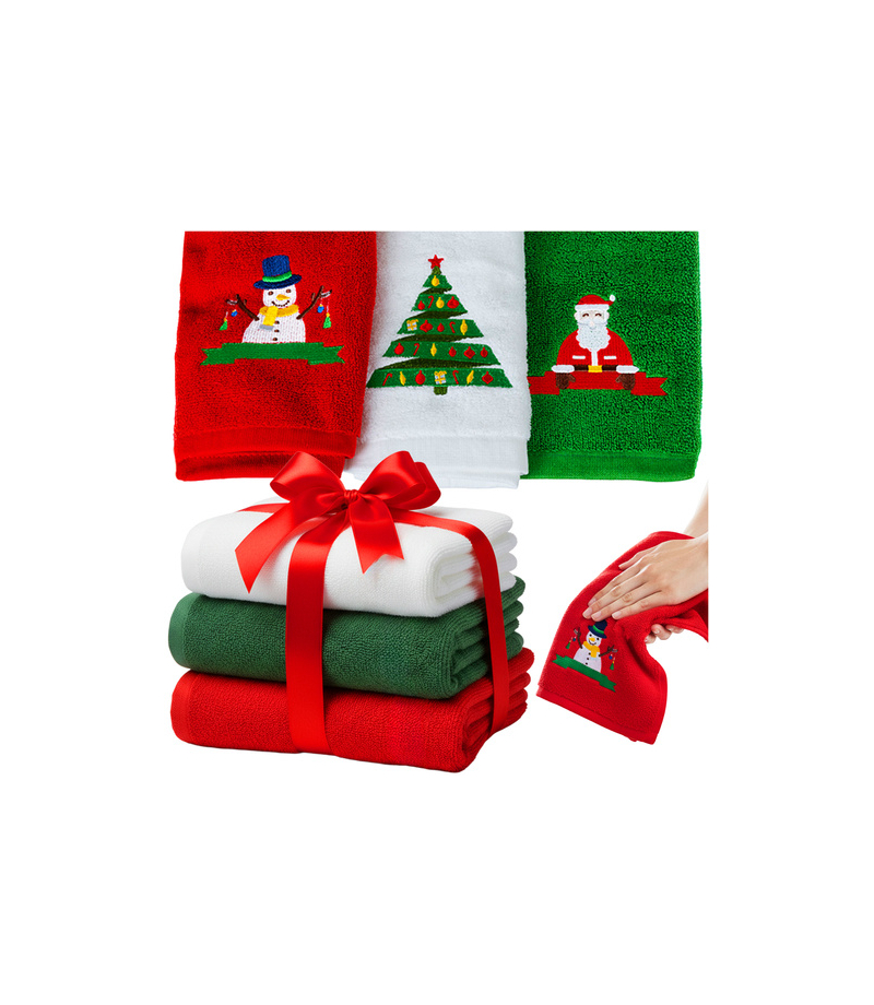 Ręczniki świąteczne RUHHY 3 szt, bawełniane z haftem: czerwony zielony biały 30x40 cm – praktyczny komplet, który tworzy klimat Bożego Narodzenia! Zestaw trzech ręczników w świątecznych kolorach i wzorach to idealny wybór dla osób, które chcą połączyć codzienną funkcjonalność z magią świąt. Tkana bawełna sprawia, że są miękkie, chłonne i wygodne w użyciu. To komplet, który świetnie sprawdzi się podczas świątecznych przygotowań, spotkań z rodziną czy jako drobny prezent – ręczniki...