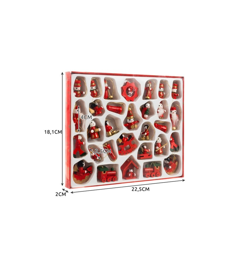 Bombki to bez dwóch zdań jedne z najważniejszych świątecznych ozdób, bez których nasze drzewko nie zamieni się w piękną nastrojową choinkę. Prezentujemy przepiękny zestaw 30 drewnianych niezwykle modnych zawieszek, które z pewnością spodobają się osobom lubiącym naturalny i nieprzereklamowany efekt. Zawieszki posiadają motywy świąteczne takie jak: gwiazda, Mikołaj, choinka, dzwonek, aniołek i wiele innych ciekawych wzorów. Dzięki temu, że dekoracje wykonane zostały z drewna, odznaczają się wytrzymałością oraz lekkością co powoli uniknąć efektu obciążenia świątecznego drzewka.