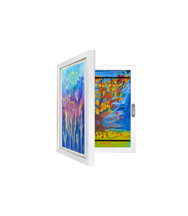 wygodna wymiana rysunków - otwierany front i magnetyczne zamknięcie pozwalają na szybką zmianę prac, bez potrzeby zdejmowania ramki