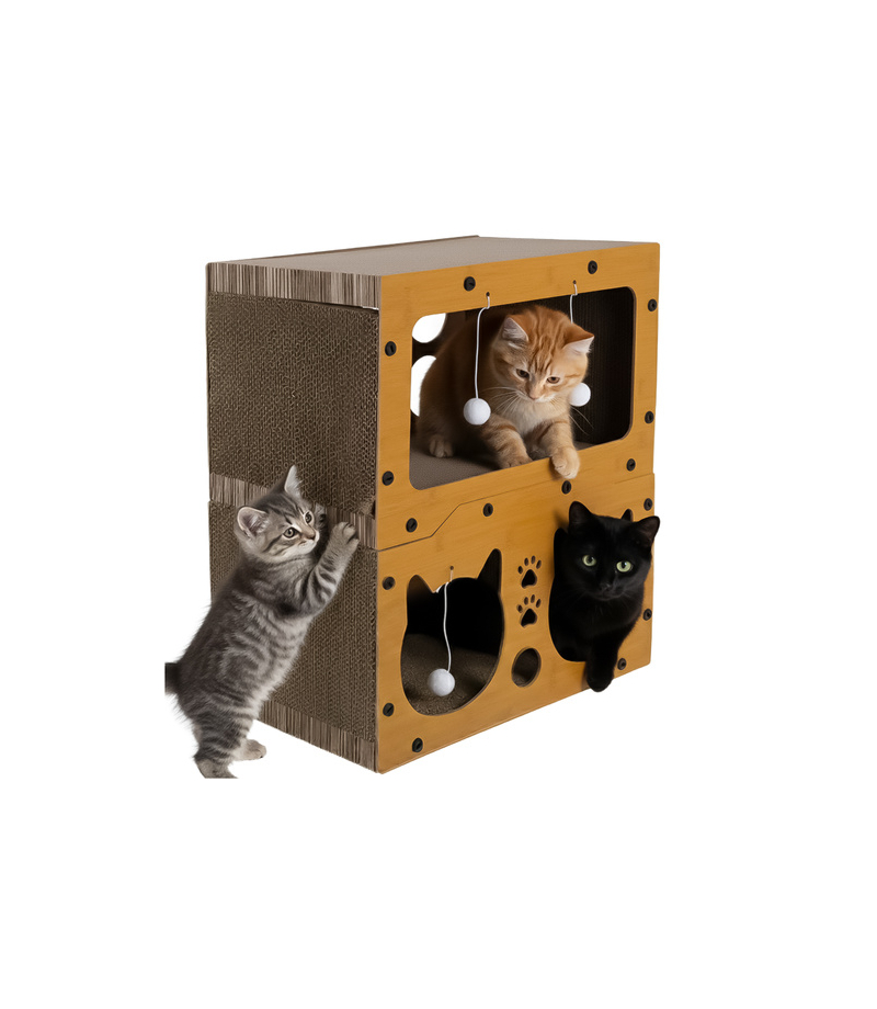 Prosty montaż w kilka minut bez narzędzi, bez stresu. Domek składany intuicyjnie, z dopasowanymi elementami - gotowy, zanim Twój kot zdąży wskoczyć do kartonu!
