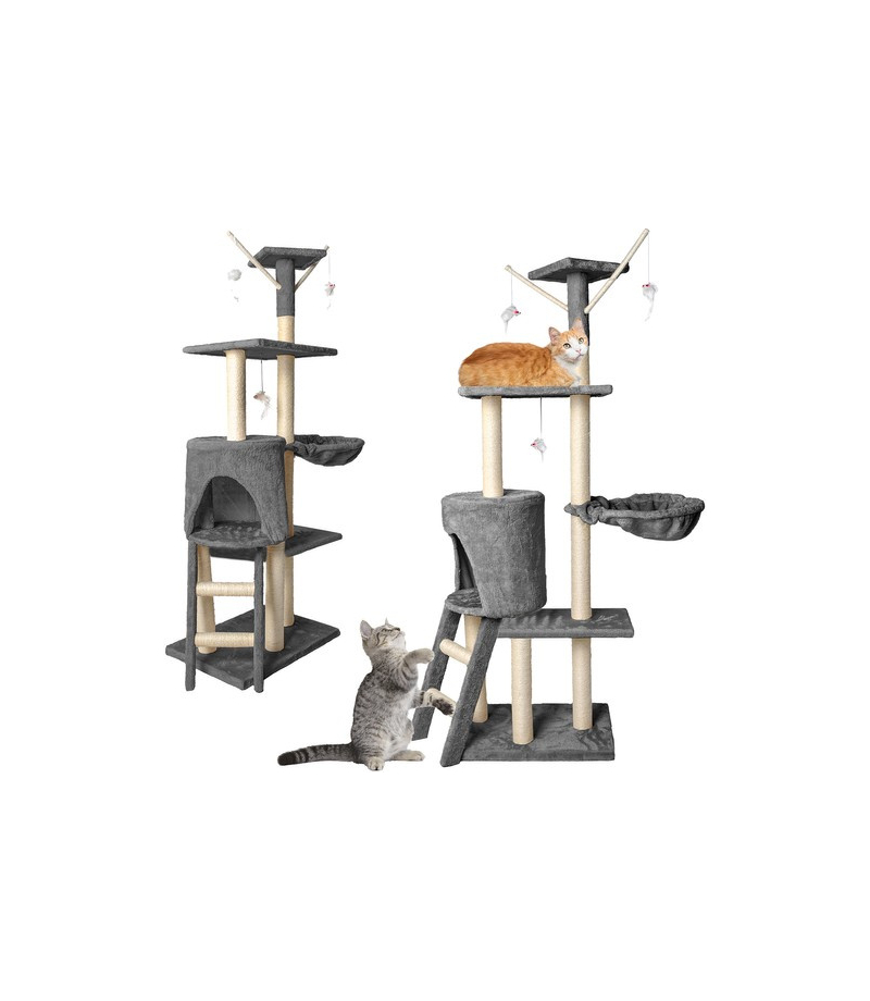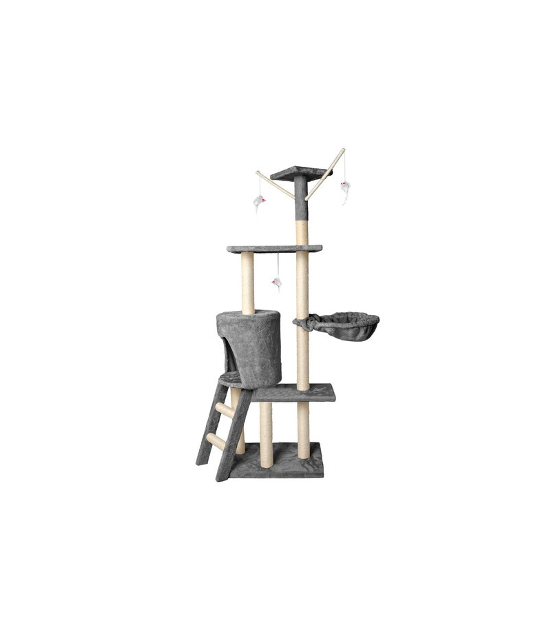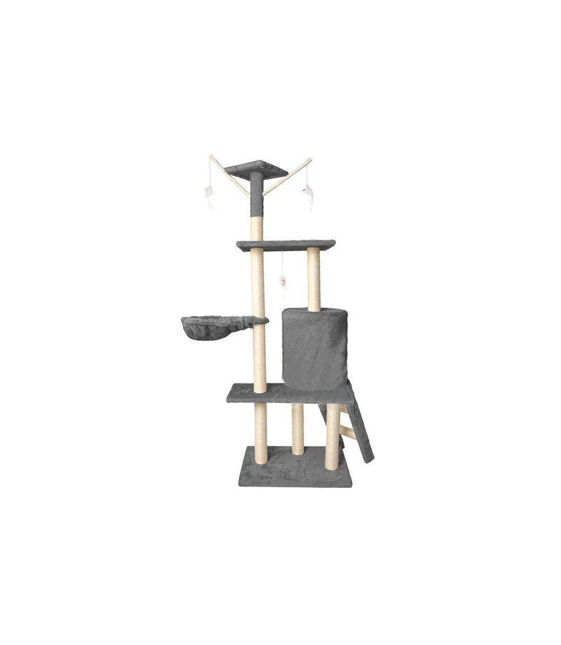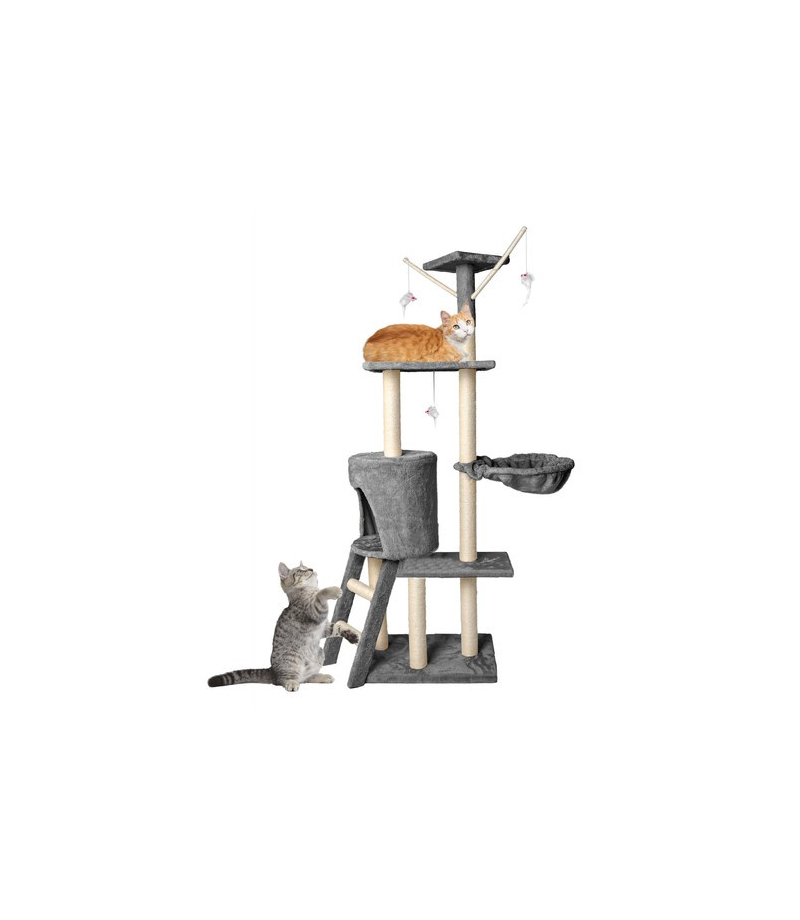 Wykonany z bezpiecznych materiałów. Tuby są owinięte sznurem sizalowym, a obicie jest delikatne w dotyku i wytrzymałe. Dodatkowo dzięki mocowaniu do ściany jest w bardzo stabilne oraz w pełni bezpieczny dla Twoich pupilów.