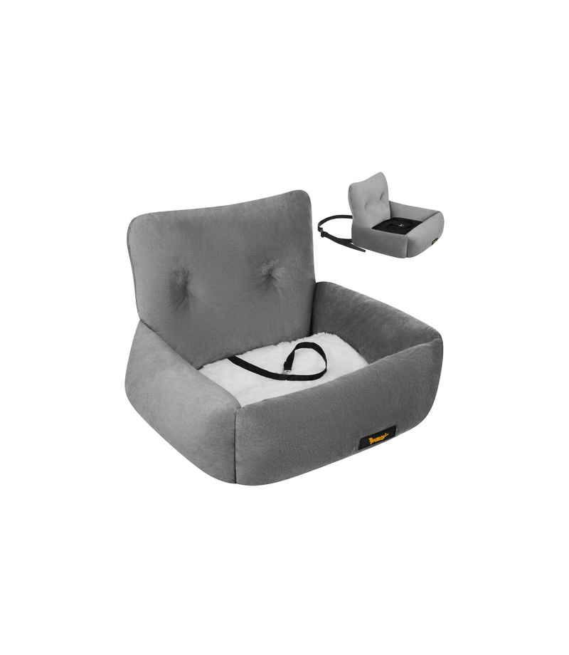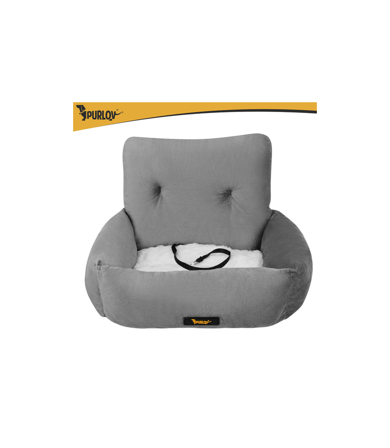 Fotelik samochodowy dla psa Purlov S 44 x 35 x 30 cm do 2,5 kg szary legowisko do auta Podróż z małym psem potrafi być stresująca dla Ciebie i dla pupila. Fotelik samochodowy Purlov w rozmiarze S stabilizuje psa na siedzeniu, pomaga ograniczyć rozproszenie kierowcy i jednocześnie chroni tapicerkę przed wilgocią, sierścią oraz zabrudzeniami. Najważniejsze zalety legowiska do auta PURLOV bezpieczne przypięcie do szelek - zmniejszasz ryzyko przemieszczania się psa podczas hamowania i zakrętów stabilny montaż do pasa bezpieczeństwa i regulowany pasek do siedzenia - fotelik nie "wędruje" po kanapie, a pies ma stałe, wygodne miejsce miękkie, otulające boki i oparcie - pupil czuje się pewniej i łatwiej się uspokaja w trasie miękka poduszka - daje psu wygodne, stabilne podparcie w trasie, dzięki czemu szybciej się uspokaja i chętniej odpoczywa w foteliku ochrona tapicerki - mniej sierści, piasku i śladów łap na fotelach wodoodporny spód - chroni siedzenie przed wilgocią po spacerze, roztopionym śniegiem czy przypadkowymi zabrudzeniami antypoślizgowy - fotelik trzyma się na tapicerce i mniej się przesuwa, dzięki czemu pupil ma spokojniejsze, pewniejsze miejsce w trakcie jazdy Specyfikacja techniczna legowiska dla psa PURLOV... Więcej szczegółów