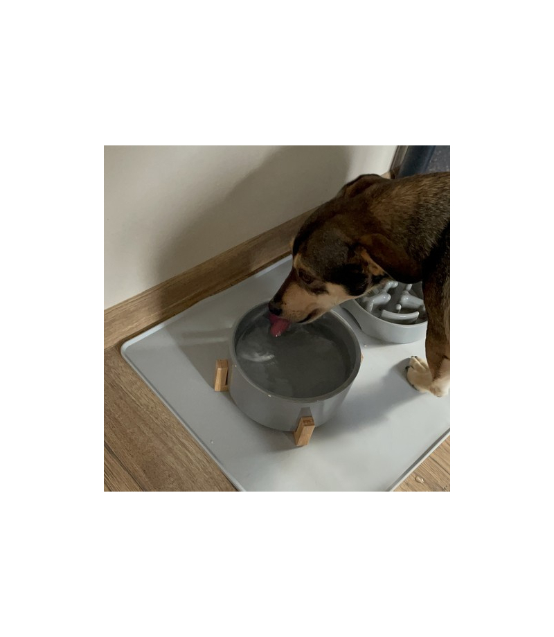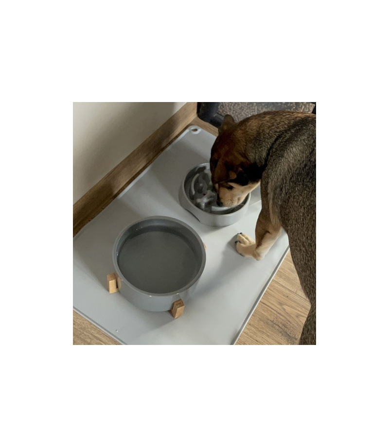 antypoślizgowość – podkładka skutecznie zapobiega przesuwaniu się misek, nawet gdy pies je intensywnie, zapewniając stabilność