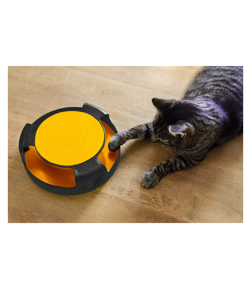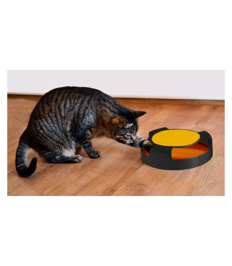 Koty uwielbiają bawić się i psocić. Zabawka dla kotów domowych w postaci kręcącej się myszy to świetna alternatywa dla polowań w naturalnym środowisku. Z pewnością zaciekawi puszystego członka rodziny i nie znudzi mu się przez długi czas. Zabawka nadaje się dla wszystkich kotów domowych, niezależnie od ich wieku, płci i wielkości. Malutkie kotki mogą siedzieć na górnej macie. Ma okrągły kształt i posiada 3 otwory. Otwory są na tyle duże, że bez problemu zmieszczą się w nich kocie łapki każdego rozmiaru. W środku znajduje się imitacja myszy, która po uderzeniu łapą zostaje wprawiona w ruch i kręci się po obwodzie koła, zachęcając tym samym kota do dalszej zabawy.