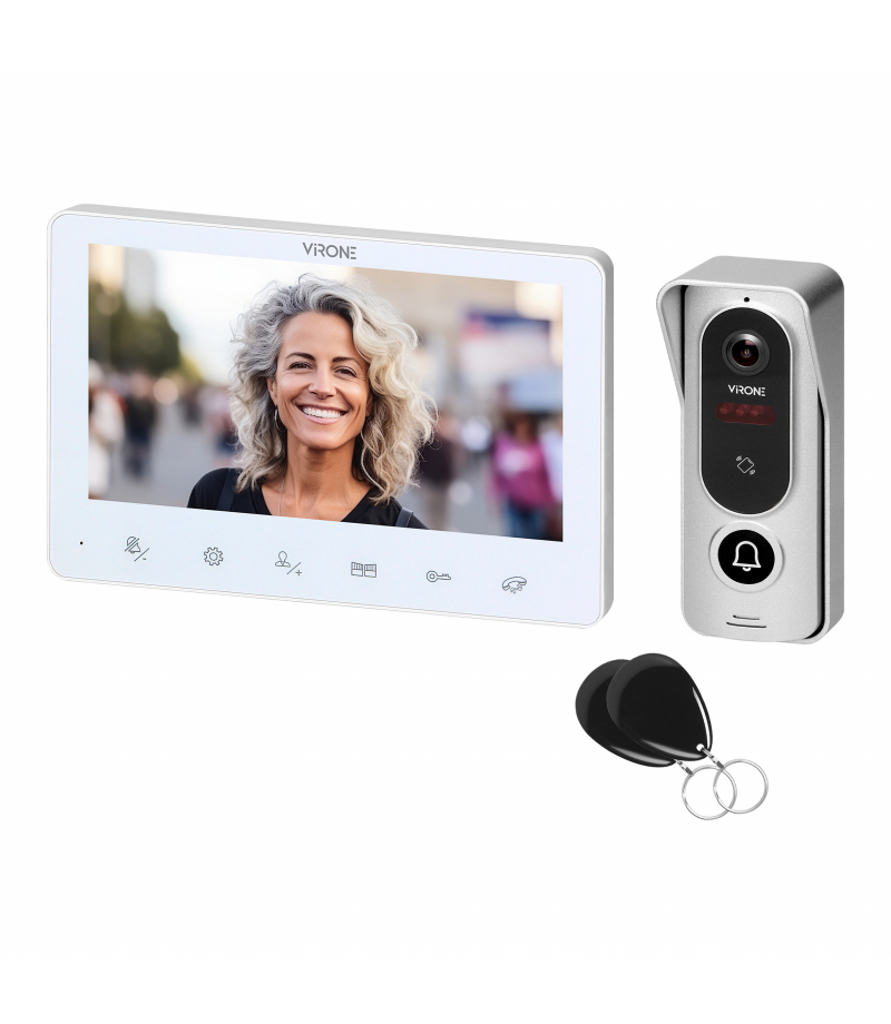 ANGU, zestaw wideodomofonowy jednorodzinny, 4-żyłowy, 7, przyciski dotykowe, RFID, biały Orno VDP-72/W Zestaw wideodomofonowy ANGU przeznaczony do domów jednorodzinnych stanowi funkcjonalne rozwiązanie kontroli wejścia na posesję, podnosząc poziom bezpieczeństwa użytkowników. Składa się z monitora wewnętrznego oraz panelu zewnętrznego, które wyróżniają się wyższym standardem wykonania i nowoczesnym designem. Urządzenie charakteryzuje się intuicyjnym 4-żyłowym połączeniem, które umożliwia...