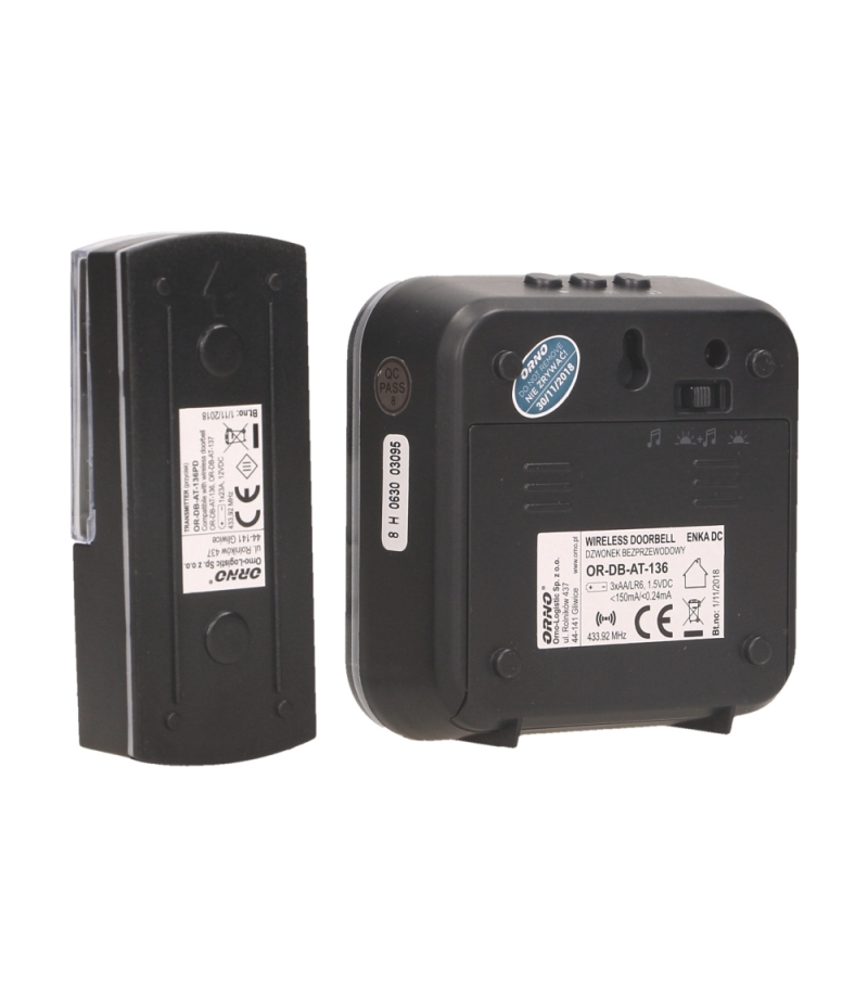 ENKA DC dzwonek bezprzewodowy, bateryjny z learning system Producent: ORNO Kod producenta: OR-DB-AT-136 Kategoria produktu: Dzwonki bezprzewodowe Dzwonek bezprzewodowy, zasięg w terenie otwartym do 100 m, wodoodporny przycisk, transmisja radiowa (częstotliwość 433MHz), 4 stopniowa regulacja głośności dzwonka, poziom dźwięku 50-80 dB, 32 dźwięki dzwonka do wyboru, trzy tryby pracy: dźwiękowy/optyczny/optyczno-dźwiękowy, liczbę odbiorników oraz przycisków współpracujących ze sobą...