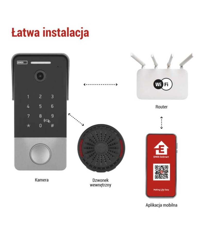 GoSmart Dzwonek wideo bezprzewodowy IP-21 PoE z klawiaturą EMOS H4034 Inteligentne życie jest jeszcze bardziej dostępne Stwórz swój własny inteligentny dom z EMOS GoSmart i innymi inteligentnymi urządzeniami kompatybilnymi z TUYA. Podłącz poszczególne produkty, skonfiguruj automatyzację ich działań i steruj nimi zdalnie za pomocą w pełni zlokalizowanej i intuicyjnej aplikacji mobilnej . Połączenie bezpieczeństwa i...