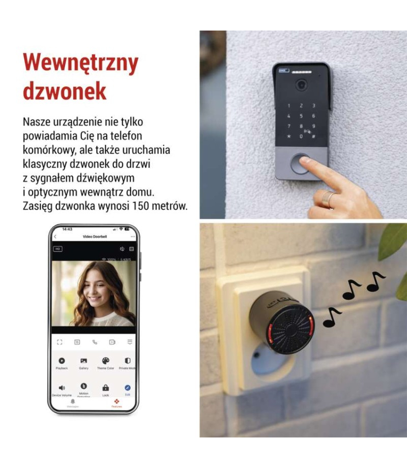 Możesz podłączyć wiele wewnętrznych dzwonków do inteligentnego dzwonka wideo, aby doskonale pokryć całe wnętrze . W ten sposób nie przegapisz dzwonka nawet jeśli nie masz pod ręką telefonu komórkowego . Praktyczny zestaw dzwonka z przyciskiemmożna znaleźć pod symbolem P5734.