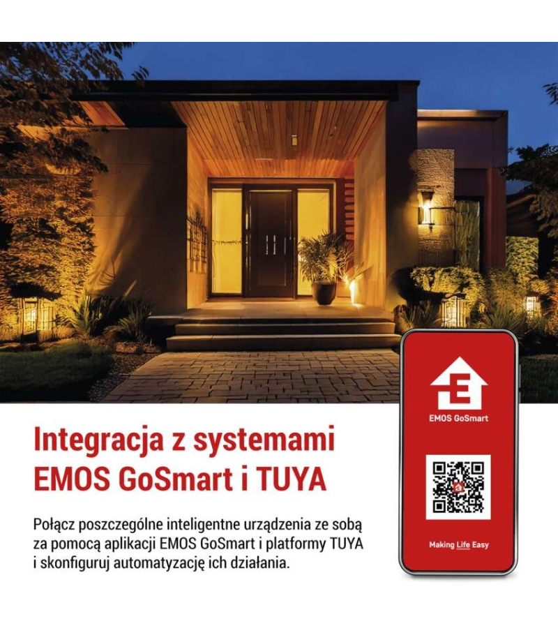 Stwórz swój własny inteligentny dom z EMOS GoSmart i innymi inteligentnymi urządzeniami kompatybilnymi z TUYA. Podłącz poszczególne produkty, skonfiguruj automatyzację ich działań i steruj nimi zdalnie za pomocą w pełni zlokalizowanej i intuicyjnej aplikacji mobilnej .
