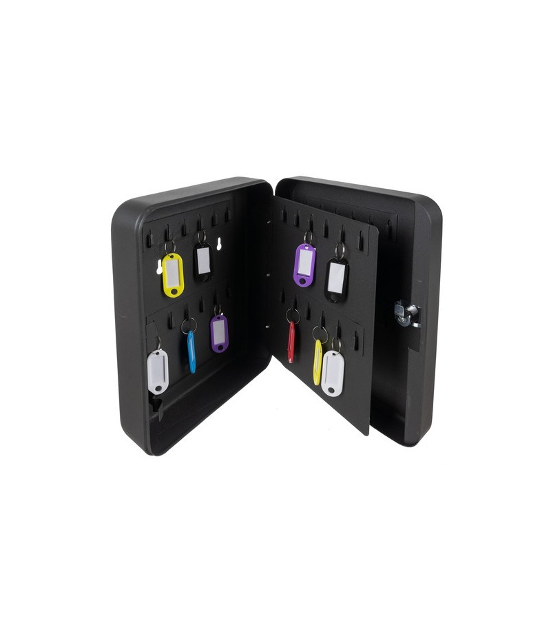 SEJF NA KLUCZE NA 48 HACZYKÓW + 48 IDENTYFIKATORÓW 48 UCHWYTÓW + NAKLEJKI – w środku są dwie przegródki, które posiadają po 12 uchwytów na klucz, dodatkowo na jest ruchoma przegródka książkowa która z dwóch stron posiada po 12 uchwytów. Na uchwyty można nakleić naklejki numeryczne od 1 – do 48 (w zestawie) , tak aby każdy klucz miał swoje miejsce. 48 IDENTYFIKATORÓW W ZESTAWIE – wszystkie identyfikatory posiadają żywe kolory, dzięki czemu są doskonale widoczne i łatwo...