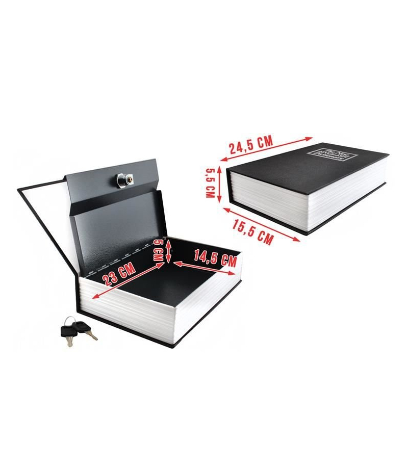 SEJF - UKRYTA KASETKA W KSIĄŻCE sejf w kształcie książki, zamykany na zamek doskonale sprawdza się w biurze, domu, hotelu stanowi bardzo dobry kamuflaż kasetka wewnętrzna wykonana z blachy stalowej okładka wykonana z kartonu oraz plastiku SPECYFIKACJA kolor: czarny wymiary zewnętrzne (dł/szer/gr): 24x15,5x5,5cm wymiary wewnętrzne (dł/szer/gr): 23x14,5x5cm waga: 700g W ZESTAWIE kasetka klucze Kasetka sejf w kształcie książki, słownika...