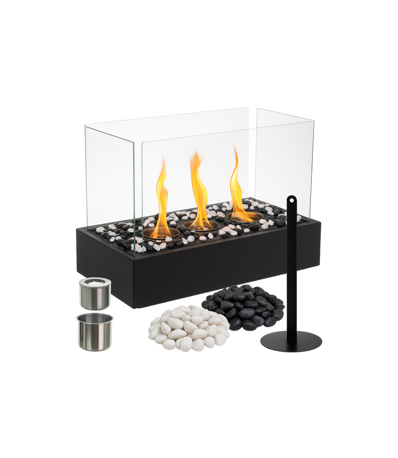 Biokominek wolnostojący do domu i na taras, bezdymny na biopaliwo bioetanol, bio kominek + kamyczki KAMINER! bezpieczny płomień w domu – bio kominek posiada 4 ścianki ze szkła , dzięki czemu ogień jest stabilny i chroniony przed przypadkowym dotknięciem czyste spalanie bez dymu i zapachu – specjalne biopaliwo spala się całkowicie, nie wytwarzając dymu ani szkodliwych substancji , dzięki czemu możesz cieszyć się nim w mieszkaniu przyjemne ciepło i...