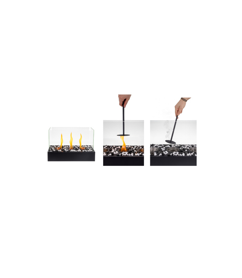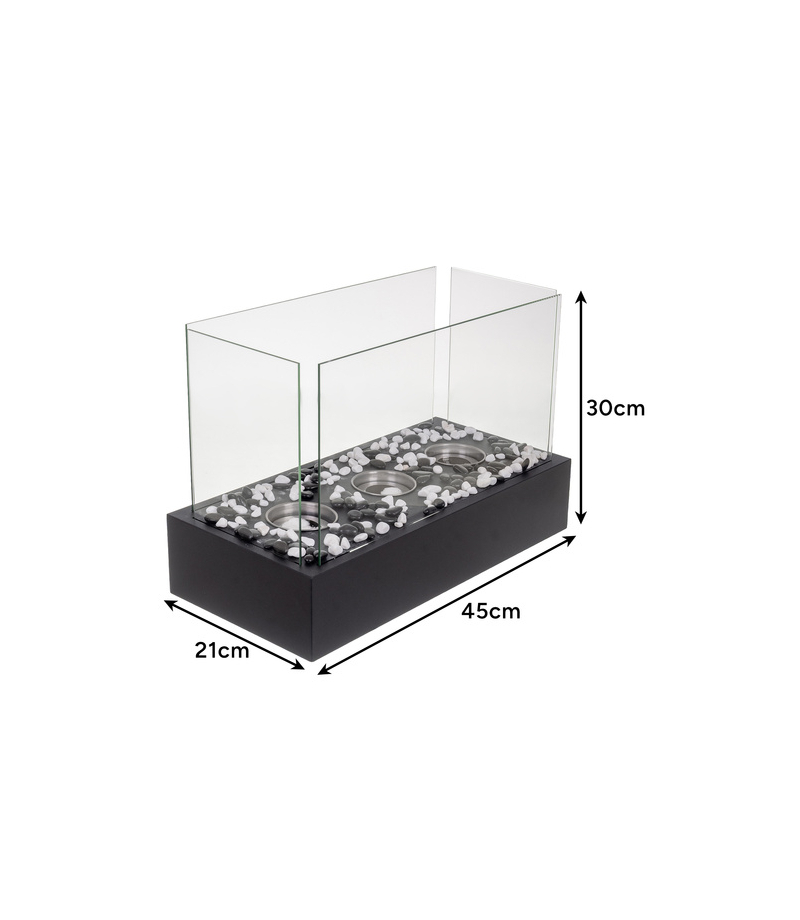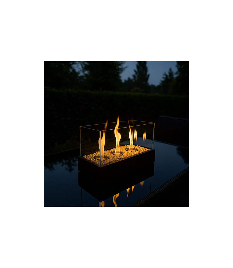 bezpieczny płomień w domu – bio kominek posiada 4 ścianki ze szkła , dzięki czemu ogień jest stabilny i chroniony przed przypadkowym dotknięciem