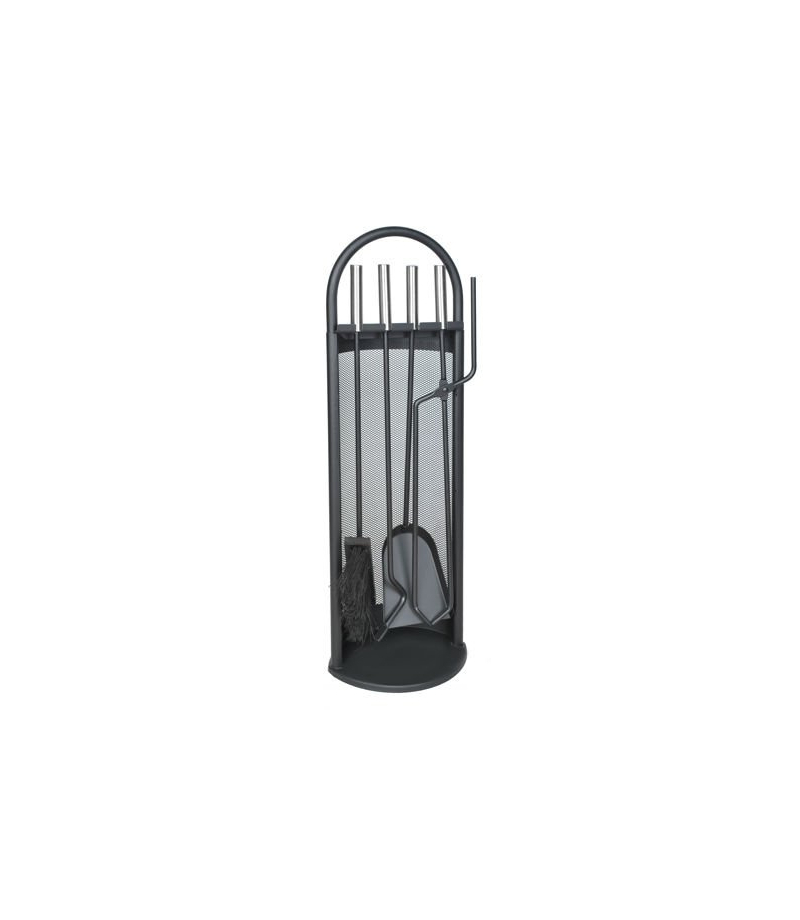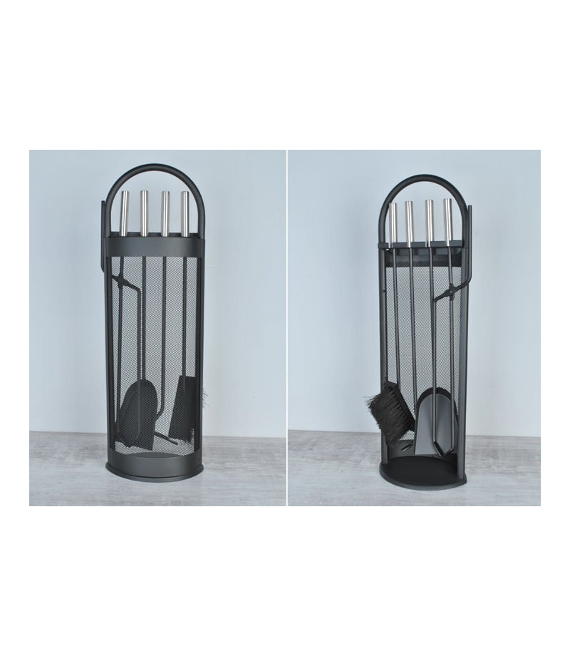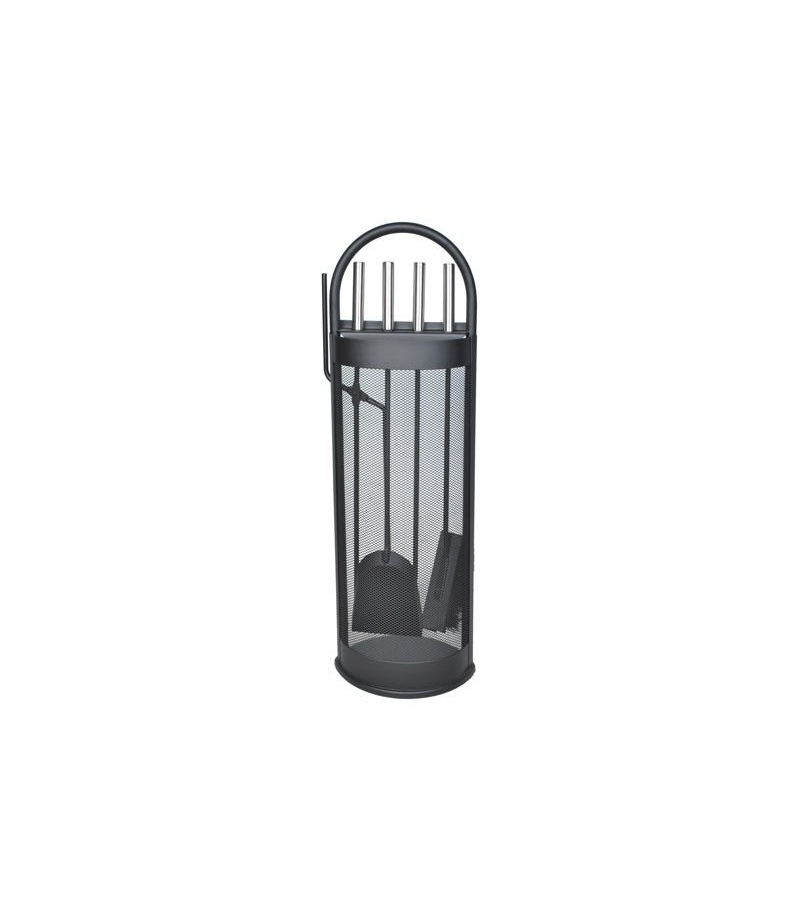 5-elementowy zestaw przyborów kominkowych o nowoczesnym designie. Wytrzymały, wykonany ze stali oraz łatwy w obsłudze. Zestaw łatwo utrzymać w czystości dzięki stojakowi wyposażonemu w podstawkę, która zatrzyma brud i popiół z narzędzi, pozostawiając Twój dom czystym. Osłona zabezpiecza akcesoria przed iskrami z kominka.