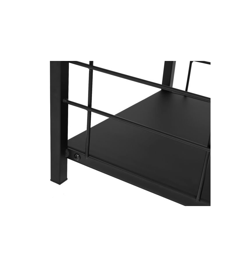 Stojak składa się z dwóch poziomów, jedna z półek – górna, zbudowana jest z 4 prętów, na których możemy przechowywać drewno, natomiast dolna nie posiada żadnych otworów; możemy na niej trzymać drobne akcesoria takie jak podpałka, zapałki, zapalniczka itp. W związku z tym, że półka jest pełna pozwala to na zachowanie czystości, gdyż uniemożliwia wypadanie drzazg, kawałków kory bądź innych zabrudzeń znajdujących się na górnej półce. Produkt w dużym stopniu przyczynia się do utrzymania czystości.