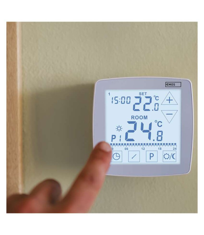 Programowalny termostat pokojowy, przewodowy z OpenTherm, P56A01 EMOS P56A01 Funkcja ON/OFF: tak Funkcja Set-back: nie Ilość programów: 6 + 3 programy użytkownika Kalibracja temperatury: tak Kolor: biały Możliwość podłączenia następnych detektorów: nie Opakowanie: 1 szt., pudełko Podświetlany wyświetlacz: tak Pomiar temperatury: 0 °C do 40 °C, rozdzielczość 0,1 °C Powiadomienia do aplikacji mobilnej: nie Rodzaj...