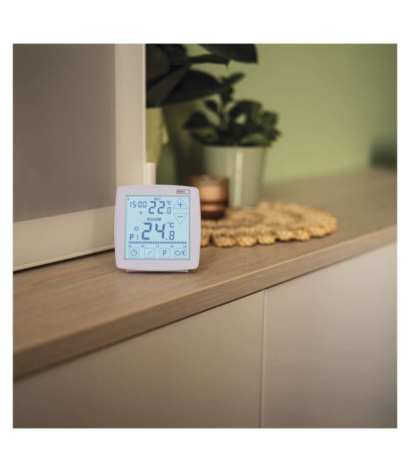 Termostat bezprzewodowy, pokojowy, programowalny z OpenTherm, P56A11 EMOS P56A11 Częstotliwość pracy: 868 MHz Funkcja ON/OFF: tak Funkcja Set-back: nie Ilość programów: 6 + 3 programy użytkownika Kalibracja temperatury: tak Kolor: biały Możliwość podłączenia następnych detektorów: nie...