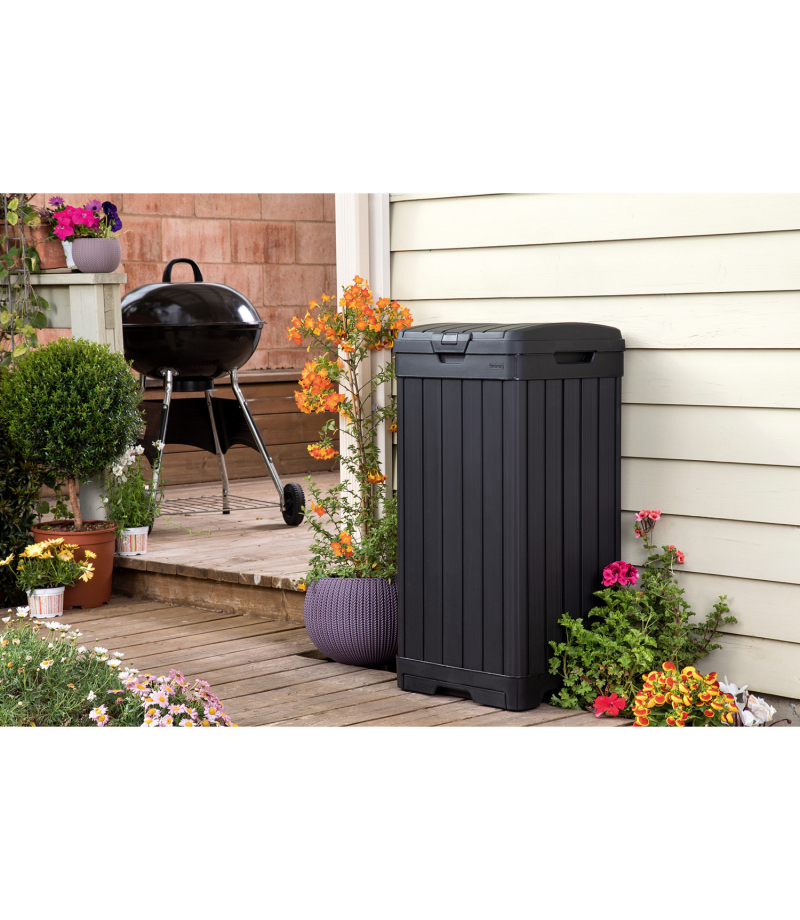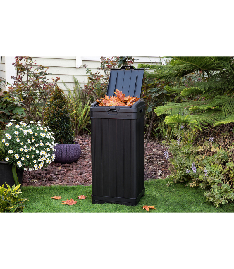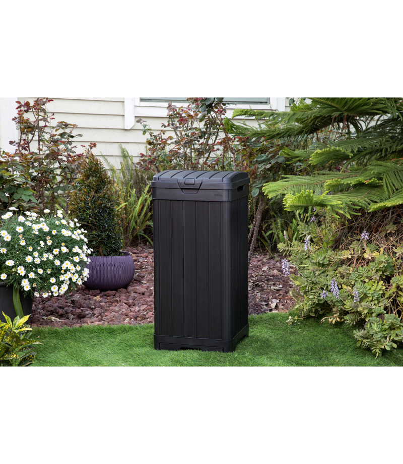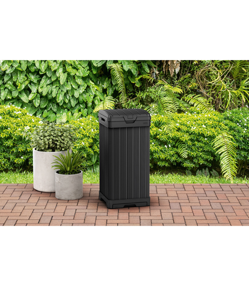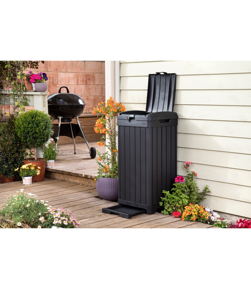 Wykonany z trwałego tworzywa jest odporny na niekorzystne warunki pogodowe oraz działanie promieni UV. Innowacyjne podwójne wieko pozwala na szczelne zamknięcie pojemnika a specjalnie zaprojektowana, wysuwana taca ułatwia jego czyszczenie.
