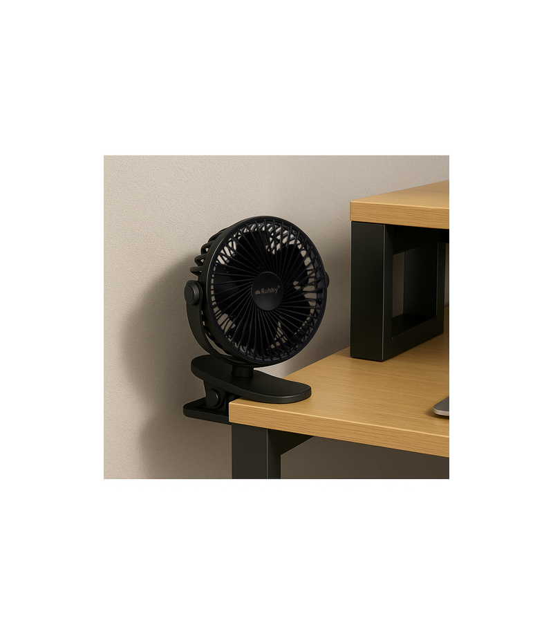 Wentylator bezprzewodowy z klipsem, wiatrak biurkowy stojący 1200mAh USB -C czarny RUHHY! s tabilność w każdej pozycji - dzięki solidnemu uchwytowi z mocną sprężyną i antypoślizgową podkładką , wentylator z klipsem stabilnie przymocujesz do biurka, blatu czy półki – bez obaw o przesunięcie lub upadek pełna swoboda kierunku - obracana czasza 360° w pionie i poziomie zapewnia dokładne ustawienie strumienia powietrza tam, gdzie potrzebujesz , na twarz czy komputer c ztery...