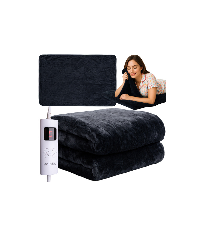 Koc elektryczny, mata grzewcza, miękki, podgrzewany duży dwuosobowy 180 x 130 cm, 6 trybów + pilot RUHHY – technologia ciepła, która otula i relaksuje Koc elektryczny RUHHY to nie tylko praktyczne źródło ogrzewania, ale przede wszystkim codzienny rytuał komfortu i odprężenia . Dzięki zaawansowanej technologii grzewczej , dużemu formatowi 180 x 130 cm , miękkiej, przyjemnej tkaninie...