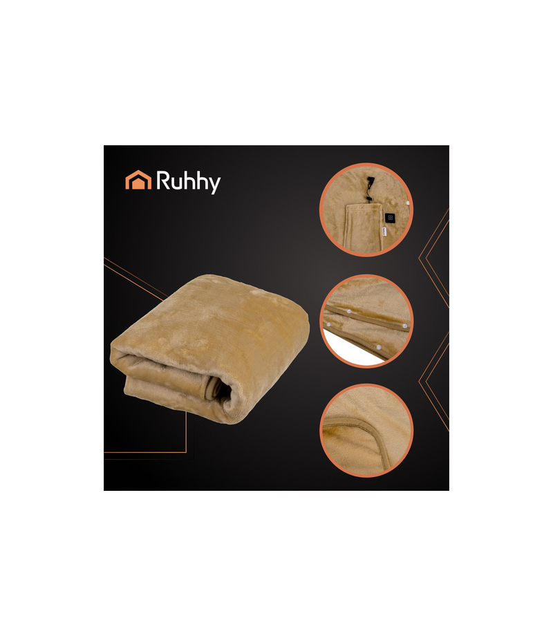 Narzuta elektryczna na plecy ramiona RUHHY zasilana na powerbank, koc 160x90 cm, miękka beżowa – technologia ciepła, która otula i relaksuje Narzuta grzewcza RUHHY to coś więcej niż klasyczna narzuta – to mobilne, nowoczesne rozwiązanie, które zapewnia komfort cieplny dokładnie tam, gdzie go potrzebujesz. Dzięki zasilaniu przez powerbank możesz korzystać z niej nie tylko w domu, ale także w pracy, podczas spaceru, na tarasie czy w podróży. Niezależnie od tego, czy odpoczywasz po...