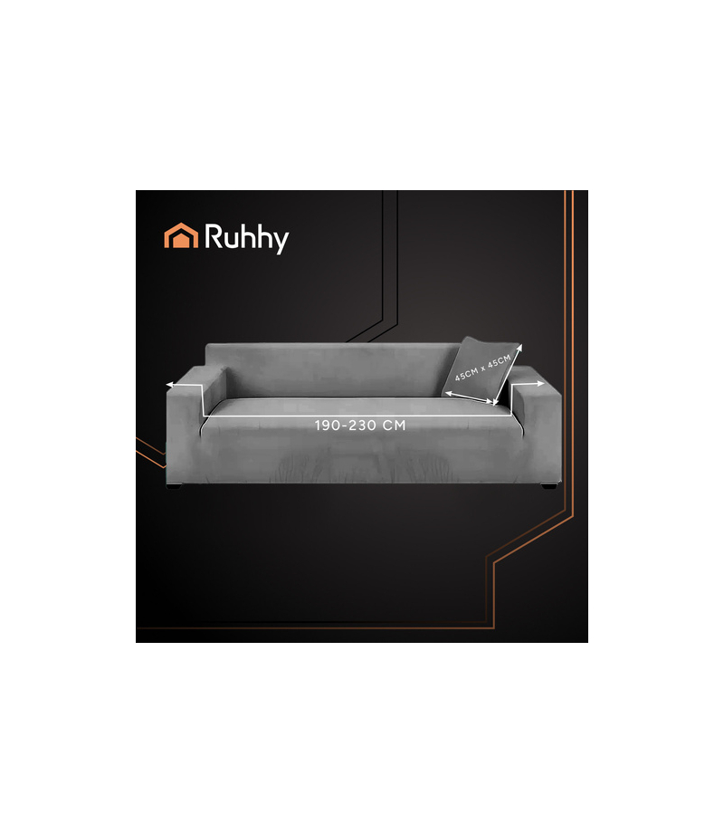 Pokrowiec na narożnik RUHHY – ciemno szary welur elastyczny 190 - 230 cm Pokrowiec marki RUHHY wykonany z miękkiego, elastycznego weluru to idealne rozwiązanie do ochrony i odświeżenia narożnika z leżanką. Dopasowuje się do kształtu mebla, nie zsuwa się i nadaje wnętrzu przytulnego, eleganckiego charakteru. Ciemno szary kolor pasuje do wielu aranżacji, a rozmiar 190 - 230 cm sprawdzi się w większości standardowych kanap narożnych. Kluczowe cechy ciemno szarego pokrowca na kanapę...