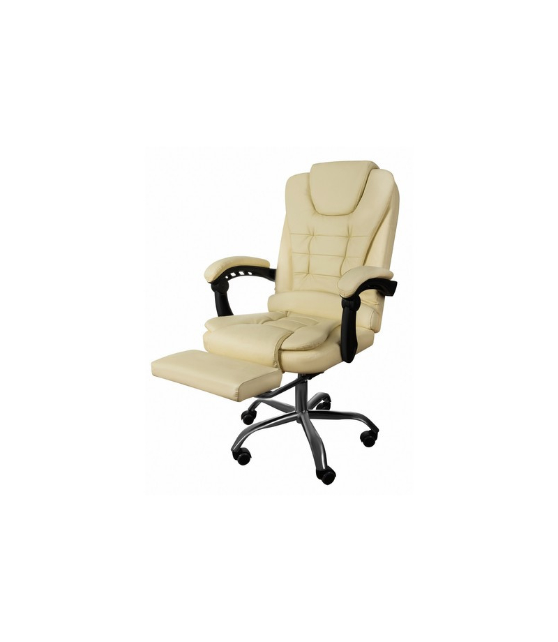 FOTEL OBROTOWY KREMOWY Z WYSUWANYM PODNÓŻKIEM I FUNKCJĄ LEŻENIA POLIURETANOWE KÓŁKA – zastosowanie poliuretanowych kółek powoduje, że podłoga nie jest narażona za zarysowania , a dywan pozostaje w stanie nienaruszonym. Wyklucza to również korzystanie z uciążliwych podkładek , które nie są łatwe w utrzymaniu czystości, a po pewnym czasie wyglądają nieestetycznie. Kółka sprawiają, że podłoże jest bezpieczne, a poruszanie się nimi jest ciche oraz komfortowe . Pięcioramienna podstawa ze...