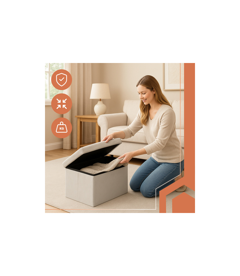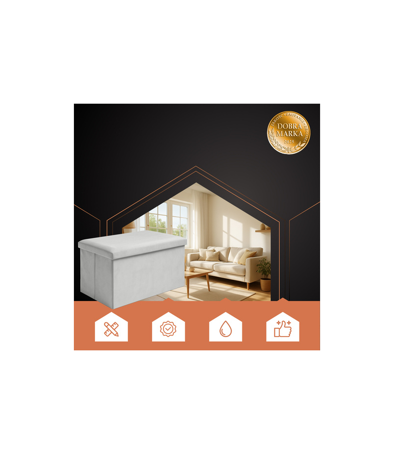 Pufa siedzisko ze schowkiem marki RUHHY to praktyczne i stylowe rozwiązanie do Twojego wnętrza. Tapicerowana wodoodpornym welurem z usztywnieniem z MDF-u oferuje miękkie siedzisko i pojemny schowek o pojemności 54 litrów – idealny do przechowywania drobiazgów, zabawek czy koców. Składana konstrukcja, wysoka jakość wykonania i maksymalne obciążenie sprawiają, że pufa łączy funkcjonalność z eleganckim wyglądem – sprawdzi się w salonie, sypialni czy przedpokoju.