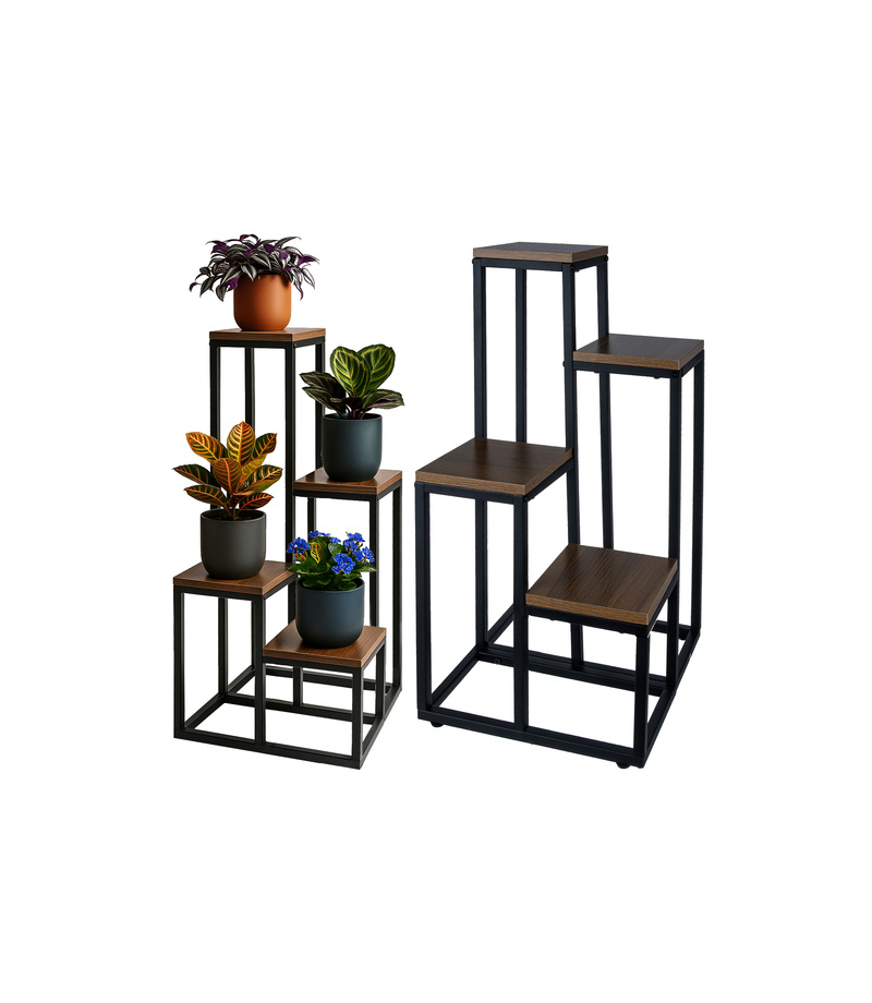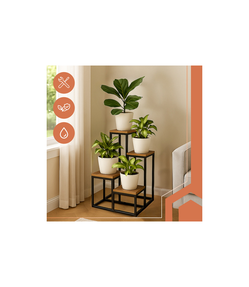 Stylowy, 4-poziomowy kwietnik stojący w stylu loft to idealne rozwiązanie do ekspozycji kwiatów i roślin w domu lub na balkonie. Stabilna metalowa konstrukcja zapewnia trwałość i bezpieczeństwo, a minimalistyczny design pasuje do każdego wnętrza. Dzięki kilku poziomom możesz wyeksponować wiele roślin na małej przestrzeni – funkcjonalnie i z klasą.