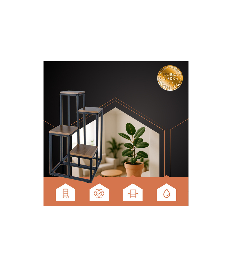 bezpieczny dla podłogi – wyposażony w stopki ochronne, które zapobiegają rysom oraz umożliwiają wypoziomowanie kwietnika