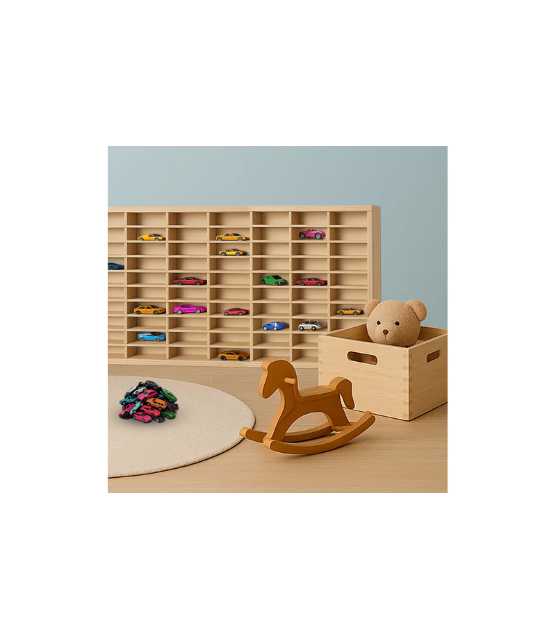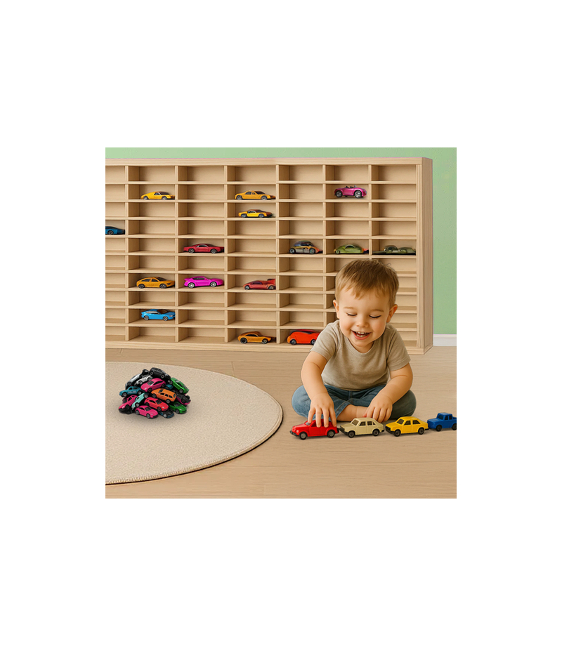 pomieści całą kolekcję resoraków – regał został zaprojektowany z myślą o kolekcjonerach – 80 precyzyjnie wyciętych przegródek gwarantuje porządek i efektowną ekspozycję, każdy model ma swoje miejsce, co sprawia, że półka jest nie tylko praktyczna, ale i dekoracyjna