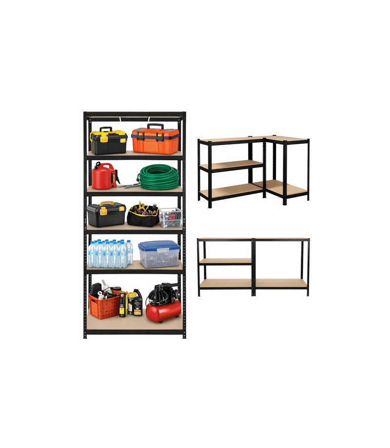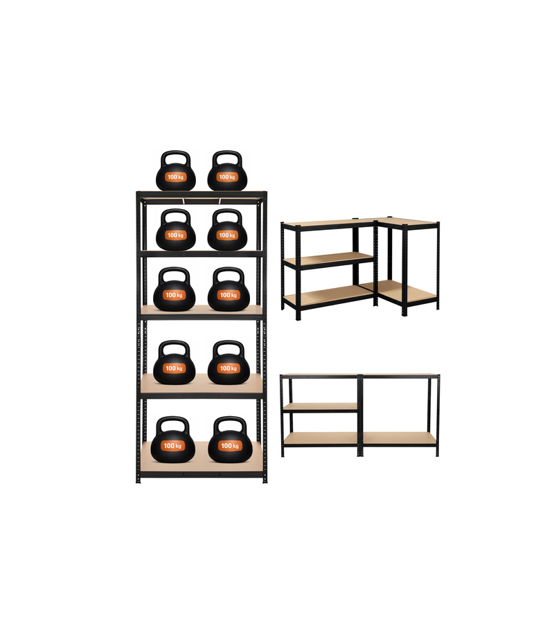 Potężny regał magazynowy stalowy 220x100x45 cm Bigstren czarny podwójnie wzmocnione 5 półek MDF Stabilny regał magazynowy Bigstren to praktyczne rozwiązanie do przechowywania bardzo ciężkich i ciężkich przedmiotów w uporządkowany sposób . Solidna stalowa konstrukcja malowana proszkowo oraz wytrzymałe półki MDF zapewniają wysoką nośność i bezpieczeństwo użytkowania . Idealny wybór do garażu, piwnicy, magazynu lub zaplecza sklepowego, gdzie liczy się trwałość i funkcjonalność....