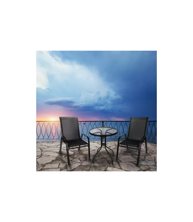 Zestaw mebli ogrodowych, stół i krzesła dla 2 osób na taras, balkon do ogrodu! trwałość - zestaw mebli ogrodowych został wykonany z bardzo mocnych materiałów: żelaznej ramy i wyściółki z PVC, a odporność na promieniowanie UV sprawia, że materiał nie blaknie pod wpływem słońca, zachowując swój kolor na długi czas przeznaczenie - ten 3-elementowy komplet to meble stworzone z myślą o balkonie, tarasie lub ogrodzie prosty montaż - meble balkonowe zawierają szczegółową...