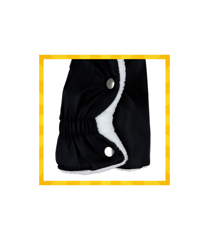 Mufki do wózka ocieplane czarne Kruzzel - zestaw 2 sztuki, podwójne rękawice z pluszem Ocieplane mufki Kruzzel to niezastąpiony dodatek do wózka dziecięcego lub sanek w sezonie jesienno-zimowym. Zapewniają ciepło, komfort i ochronę dłoni nawet w mroźne dni. Dzięki miękkiej pluszowej wyściółce i wodoodpornemu materiałowi zewnętrznemu idealnie sprawdzą się dla rodziców, którzy cenią sobie wygodę i styl. Najważniejsze zalety mufek Kruzzel Wodoodporna powłoka z...